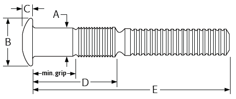 鉚釘長度需要根據(jù)板厚來選擇,長度代碼如下: -3:3.18~6.35mm, D=13.92mm;
